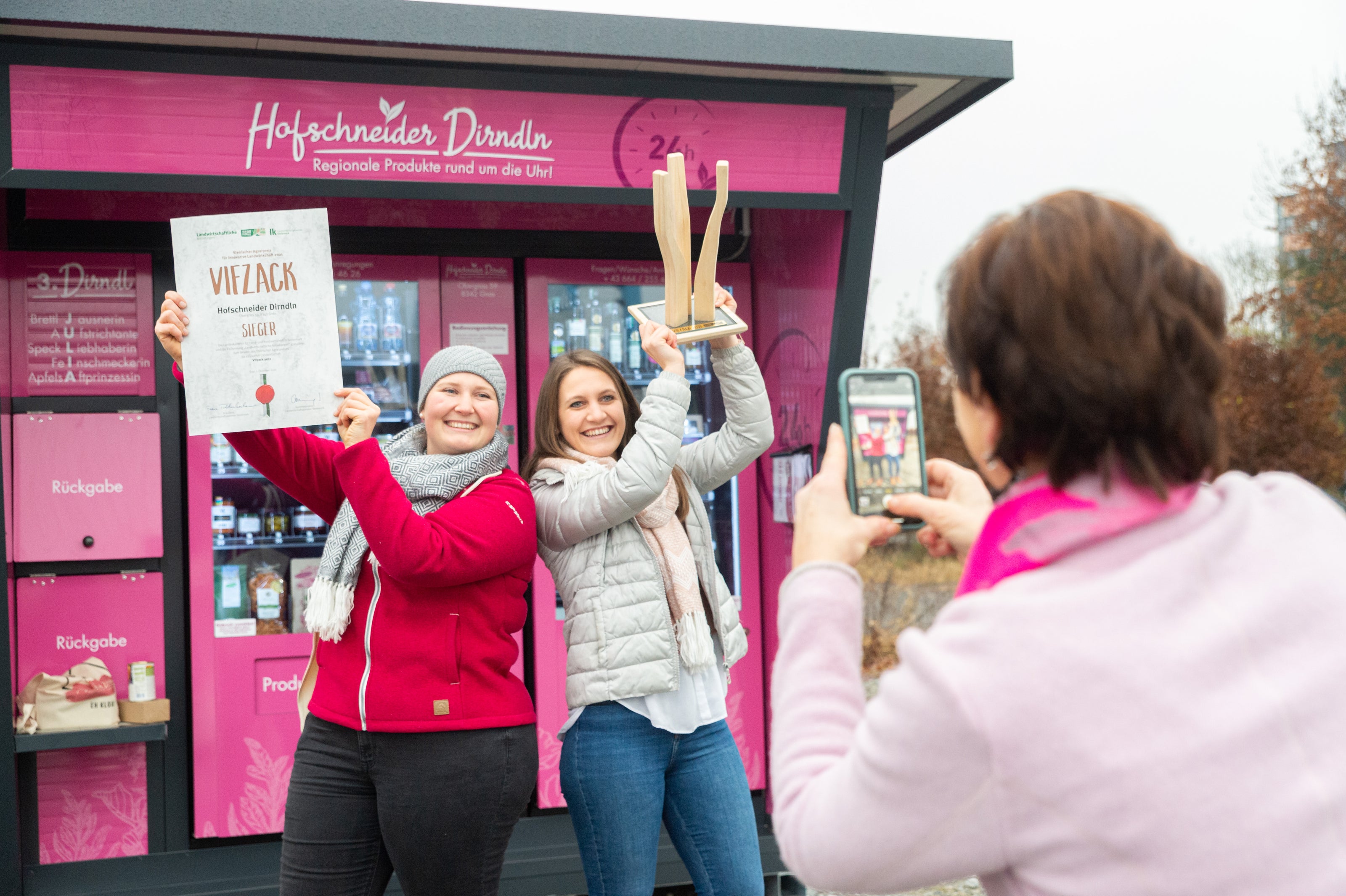 Agrar-Innovationspreis Vifzack 2021 geht an: Die Hofschneider Dirndln mit ihren pinken Automaten ... ➡️ weiterlesen